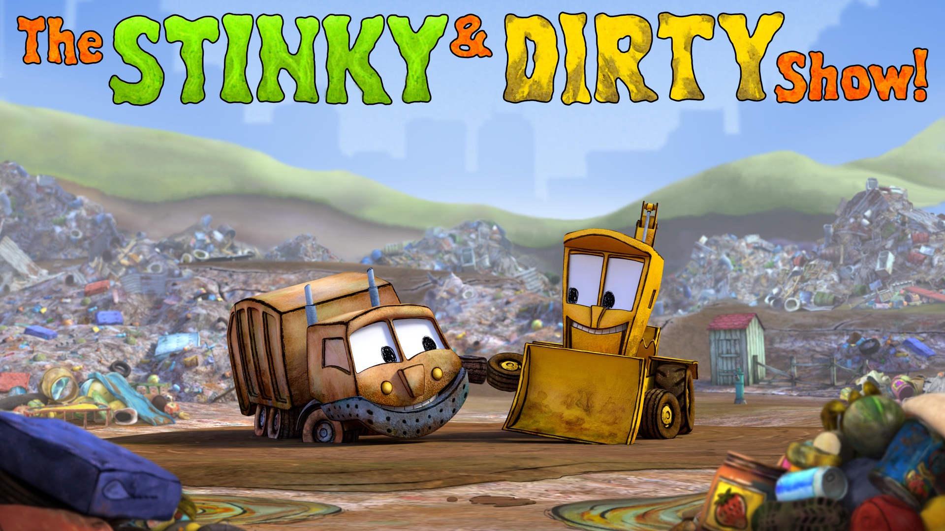 For The Stinky & Dirty Show, my job was to bring these wonderful characters to life through CGI animation. From the very beginning, we knew we wanted to preserve the original charm of the wonderful illustrations from the McMullen books. To do that, every character, prop, and environment was lovingly crafted with rich watercolor-like textures and expressive brushstroke line work. Our team created custom animation rigs for each different type of vehicle, ship or train. I wanted to make sure every character moved and operated in a way that felt technically correct. Stinky the trash truck still picked up trash, and Dirty who is a Mechanical digger still dug away on construction projects. At the same time, we wanted them to act like kids: expressing emotion through their faces, and even using their tires and wheels as hands, while still staying true to how real vehicles work. For the show's signature "thinking/drawing" sequences, we switched to 2D animation to make those moments stand out visually. The preschool curriculum theme of resourcefulness drove every story—it's all about asking "What if…?" to solve problems, and learning that it's okay to fail. For example, in the episode "Lost!", a thick fog keeps Stinky and Dirty from finding their way home. After a few "What ifs," they discover that a trail of smelly garbage is just the thing to guide them back!